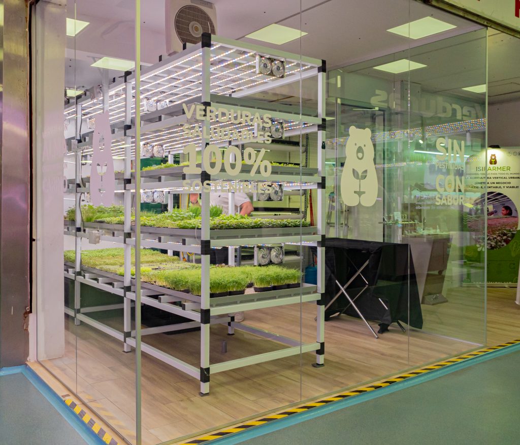 Cultigreens es una marca de producción urbana creada dentro del ecosistema ISIFARMER, que opera desde una microgranja indoor en el Mercado de San Pascual y se ha convertido en un referente del modelo de microemprendimiento inclusivo y sostenible.
